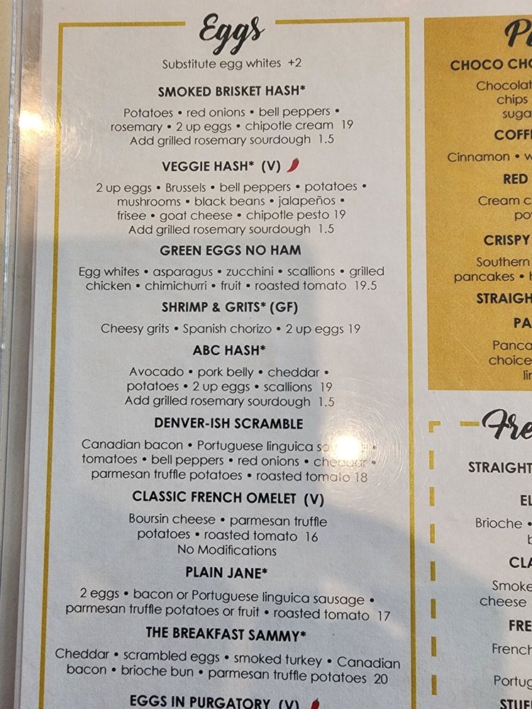 - Eggs: Enjoy indulgent options like the Steak and Eggs, featuring a perfectly cooked flat iron steak and Parmesan truffle potatoes, or savor the rich Lobster Scramble with creamy Boursin cheese.